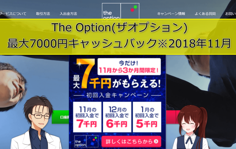 「最大7千円がもらえる!11月から3ヵ月間限定!初回入金キャンペーン!(The Option)」